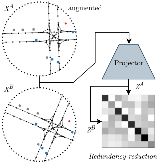 Royden Wagner, Ömer Şahin Taş, Marvin Klemp, Carlos Fernandez Lopez, Christoph Stiller TMLR, 2024 arXiv / code RedMotion fuses local road features into a global embedding via an internal decoder, then applies self-supervised redundancy reduction across augmented views to unify local and global road representations. |